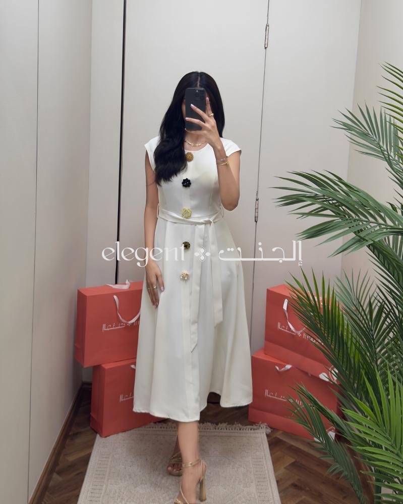 لا تفوتي فرصة امتلاك هذا الفستان الأبيض الأنيق! اجعلي إطلالتك مميزة وجذابة مع فستان أبيض أنيق مزين بوردات ملونة – تصميم فخم للمناسبات. تسوقي الآن وكوني محط الأنظار!