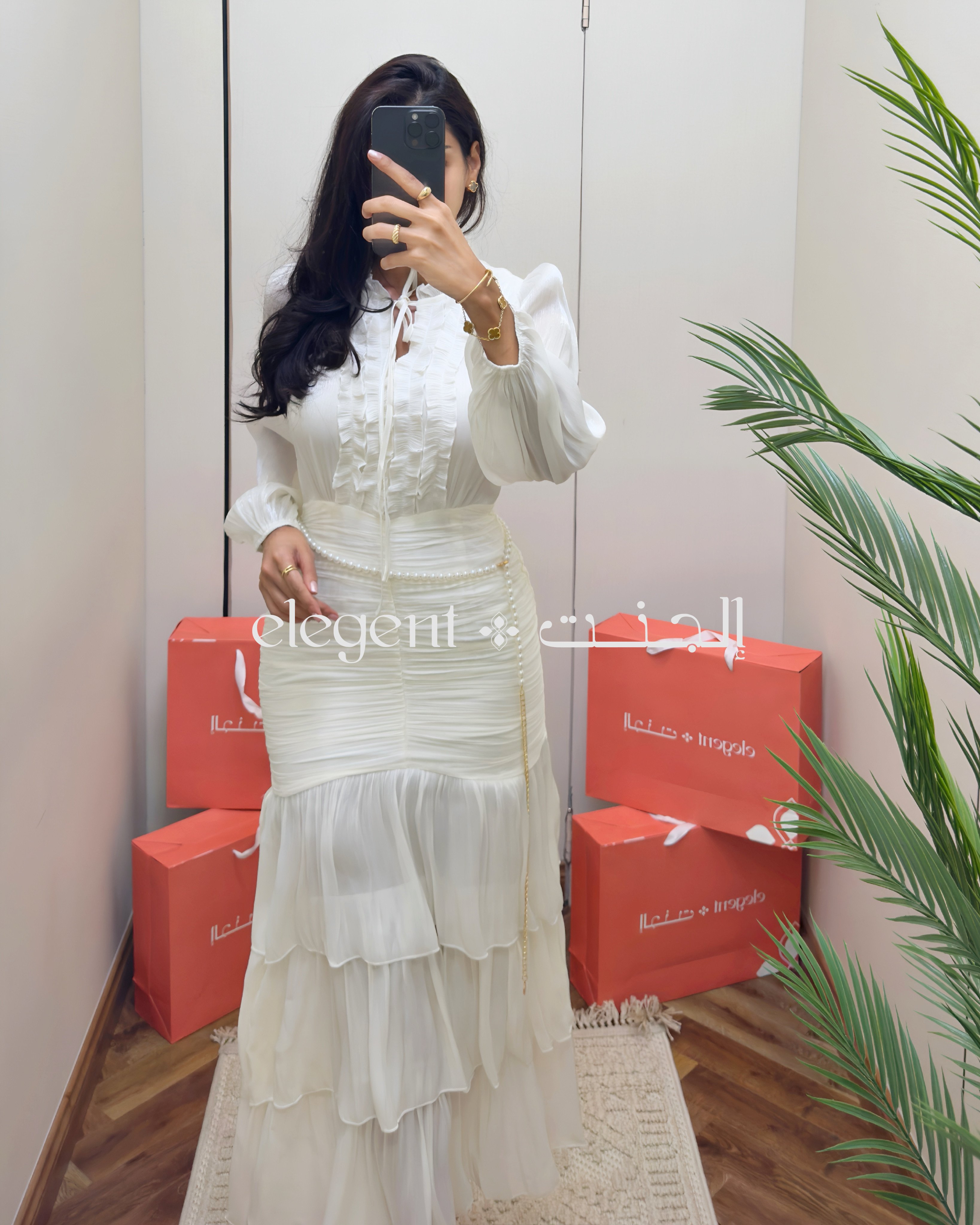 هذا الفستان ليس مجرد قطعة ملابس، بل هو تعبير عن أنوثتك ورغبتك في التميز. مع تصميمه الفريد، سيجعلك تشعرين بالراحة والثقة في كل مناسبة. لا تفوتي الفرصة للحصول على فستان أبيض بكسرات وطبقات أورجنزا ناعمة، فهو الخيار الأمثل لك!