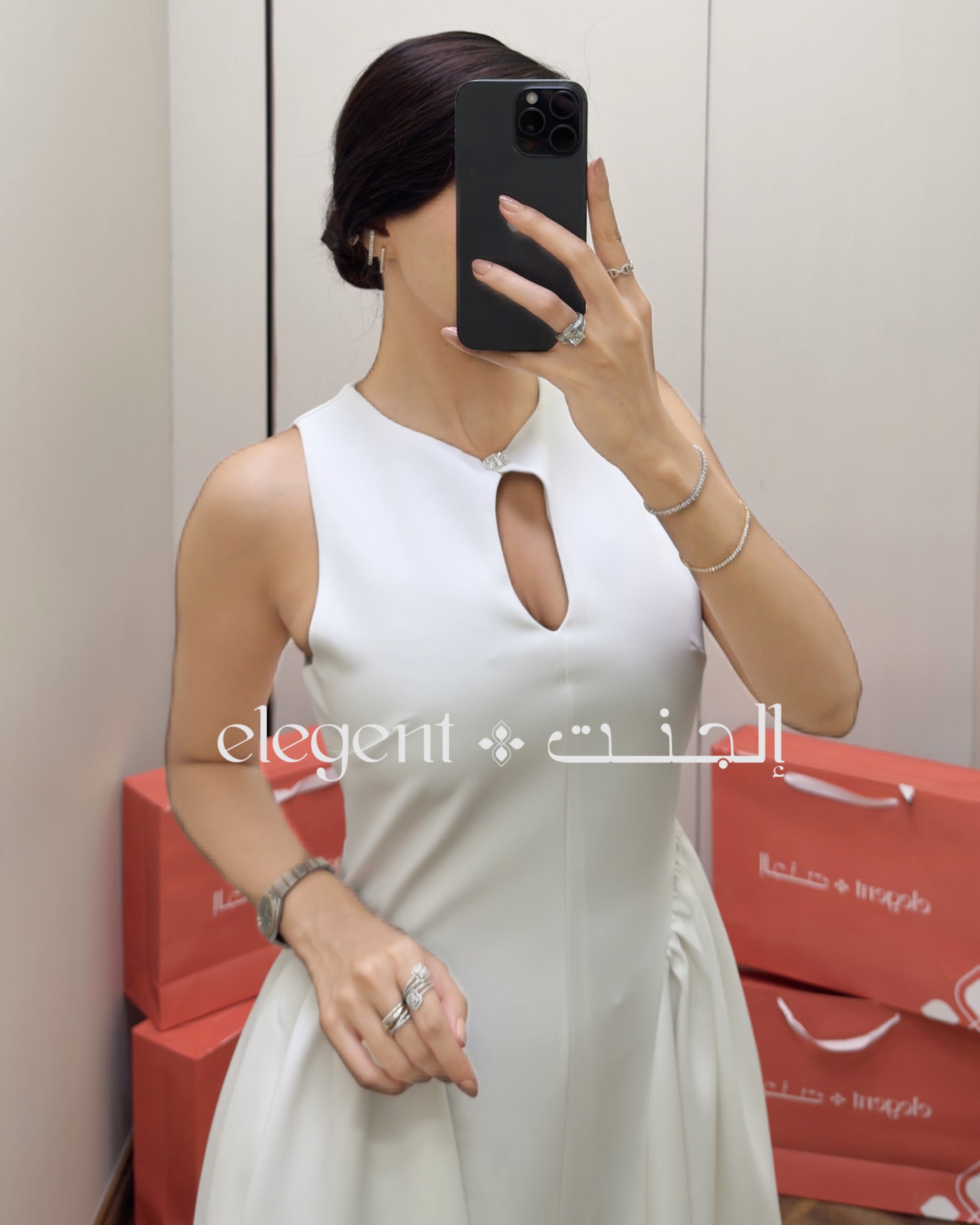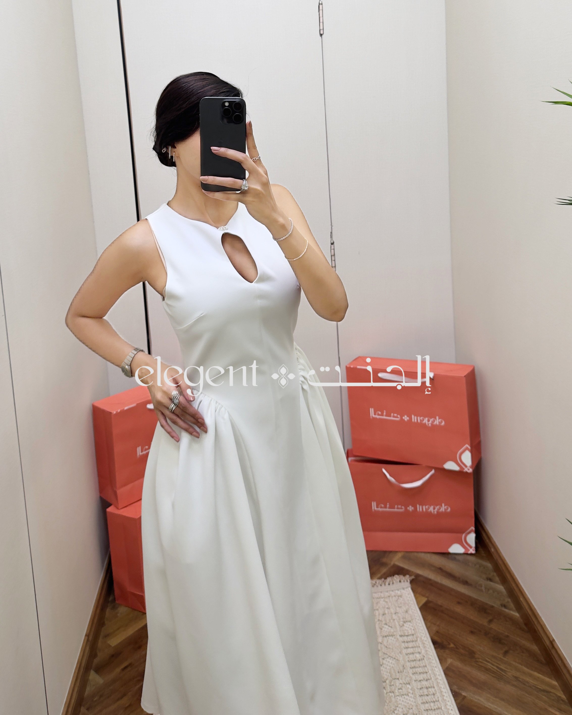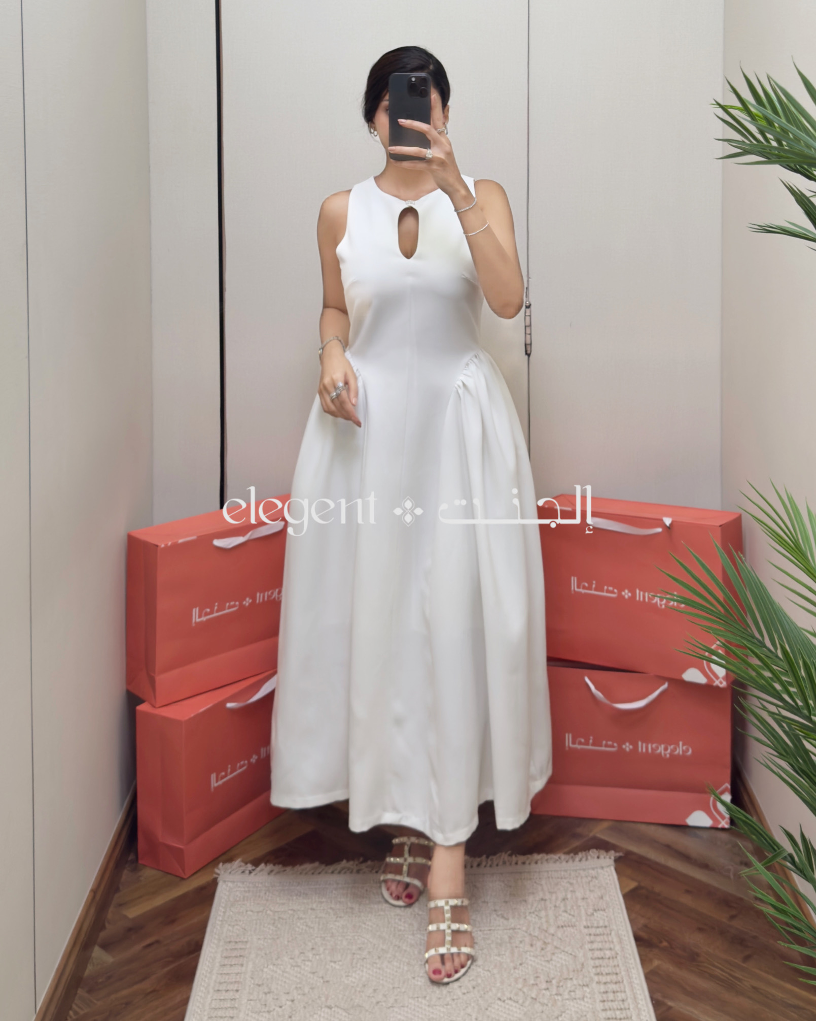 لا تفوتي الفرصة لتسوق فستان أبيض ناعم بتصميم فاخر يجسد الأنوثة والأناقة المطلقة. اجعلي هذا الفستان جزءًا من خزانة ملابسك اليوم!