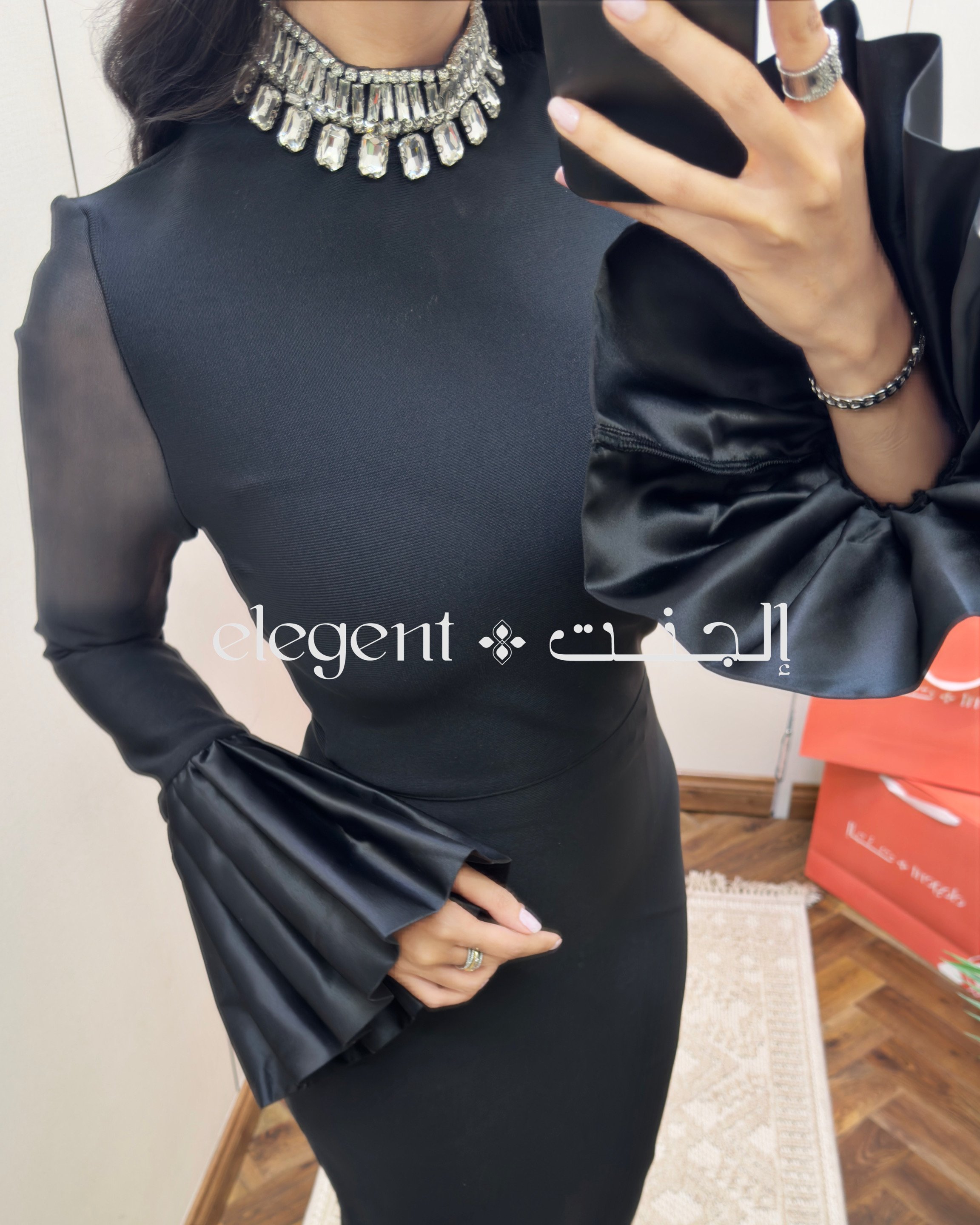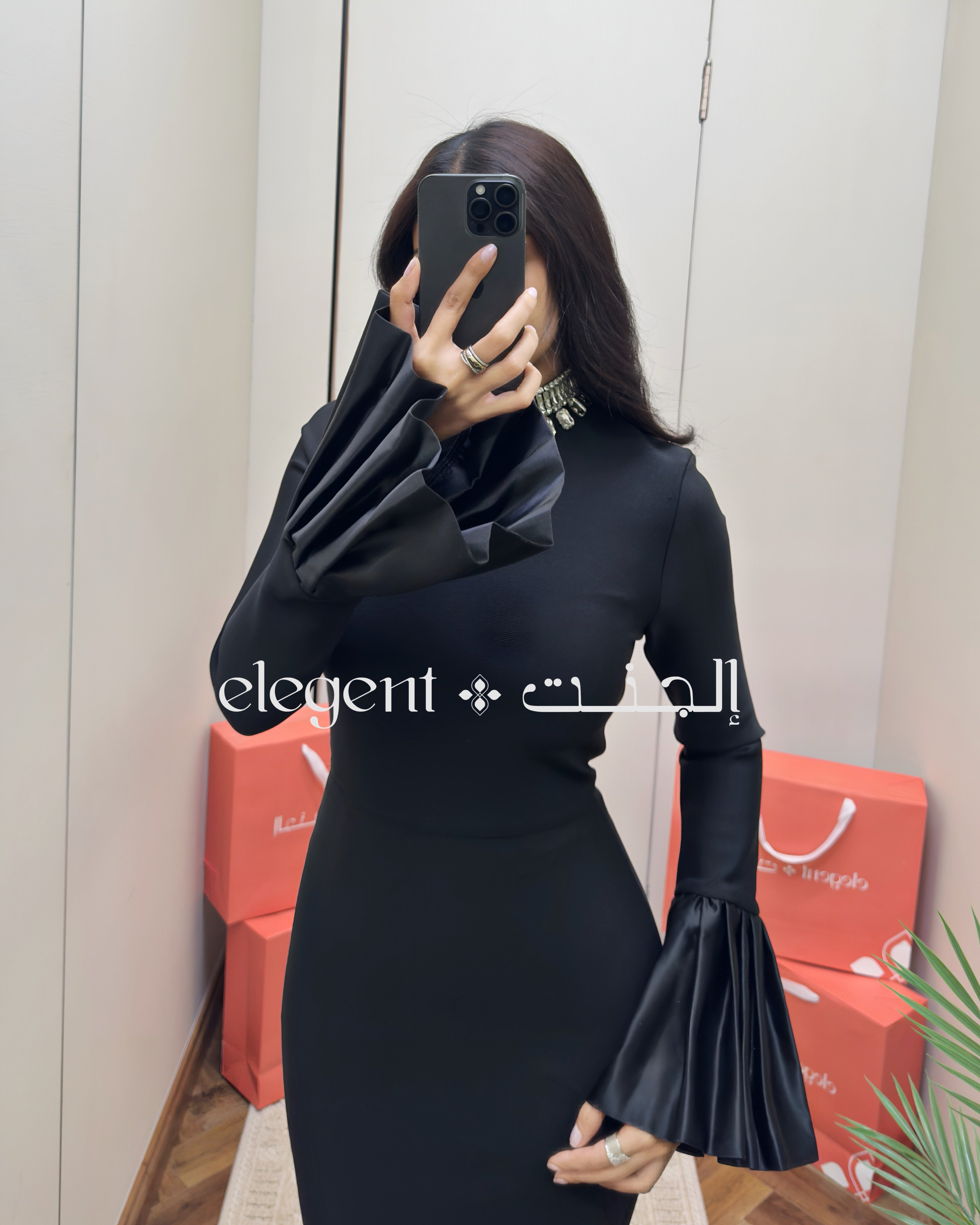 فستان سحر الساتان هو الخيار المثالي لتتركي أثرًا لا يُنسى في كل مناسبة. يتميز هذا الفستان الأسود الأنيق بتصميمه الذي يحتضن القوام بانسيابية ونعومة، مما يجعله قطعة لا غنى عنها في خزانة ملابسك. الأكمام الدرامية من الساتان الفاخر تضيف لمسة فنية مميزة، مما يجعلك تشعرين بالثقة والجاذبية.