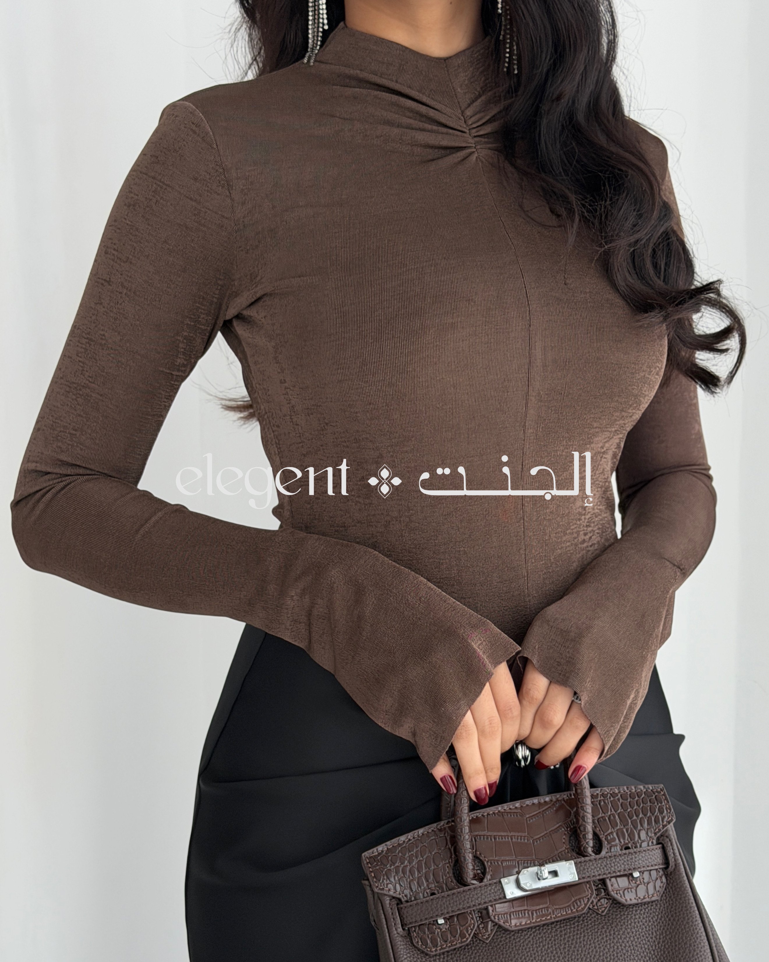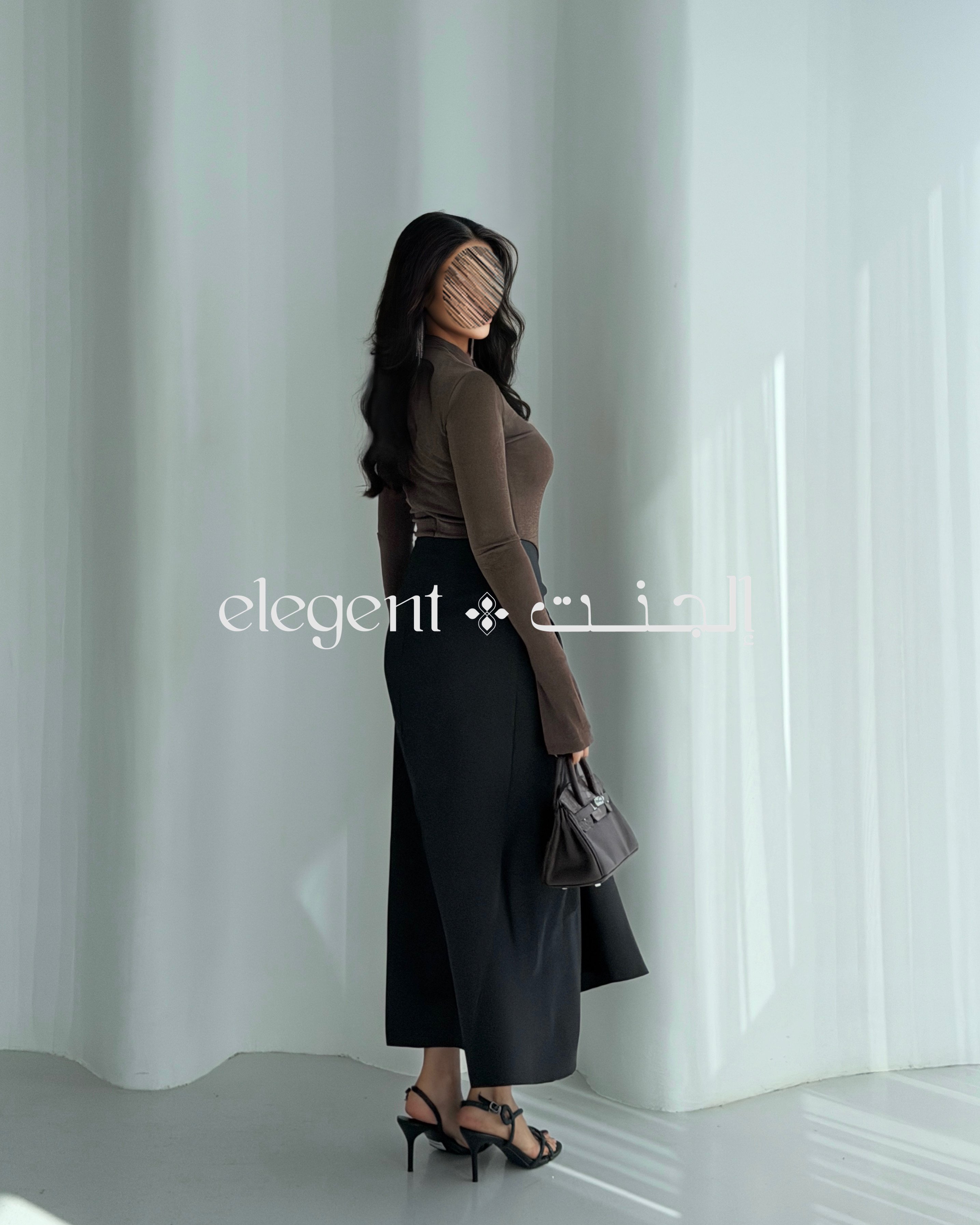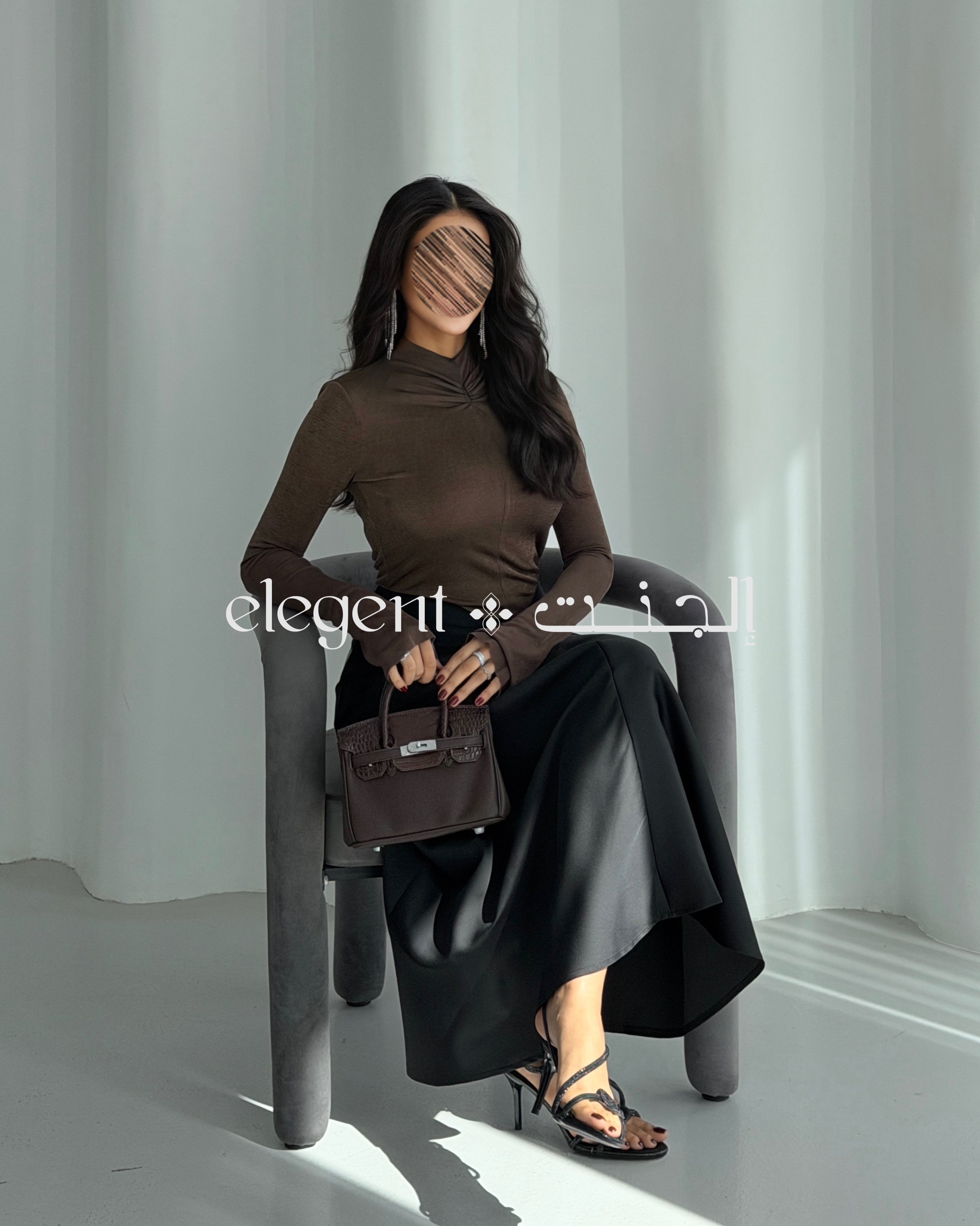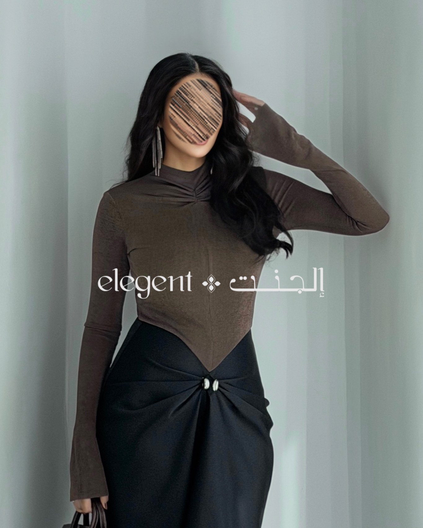 اختاري الفخامة مع فستان استرتش بني وميكادو أسود بتفصيلة لؤلؤية. يتميز هذا الفستان بتصميمه الفريد الذي يجمع بين الخامة العصرية واللمسات الراقية، مما يجعله الخيار المثالي لسهراتك الخاصة.