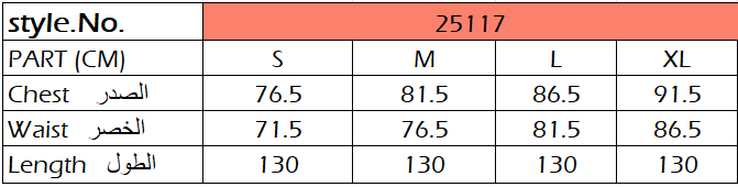 تأتي القصة الضيقة من الأعلى لتنساب بانسيابية إلى الأسفل، مما يمنحك إطلالة أنثوية جذابة تجمع بين الفخامة والنعومة. طوله يبلغ 130 سم، مما يجعله مناسبًا لمختلف الأطوال، حيث يمكن ارتداؤه بسهولة مع مختلف أنواع الأحذية.