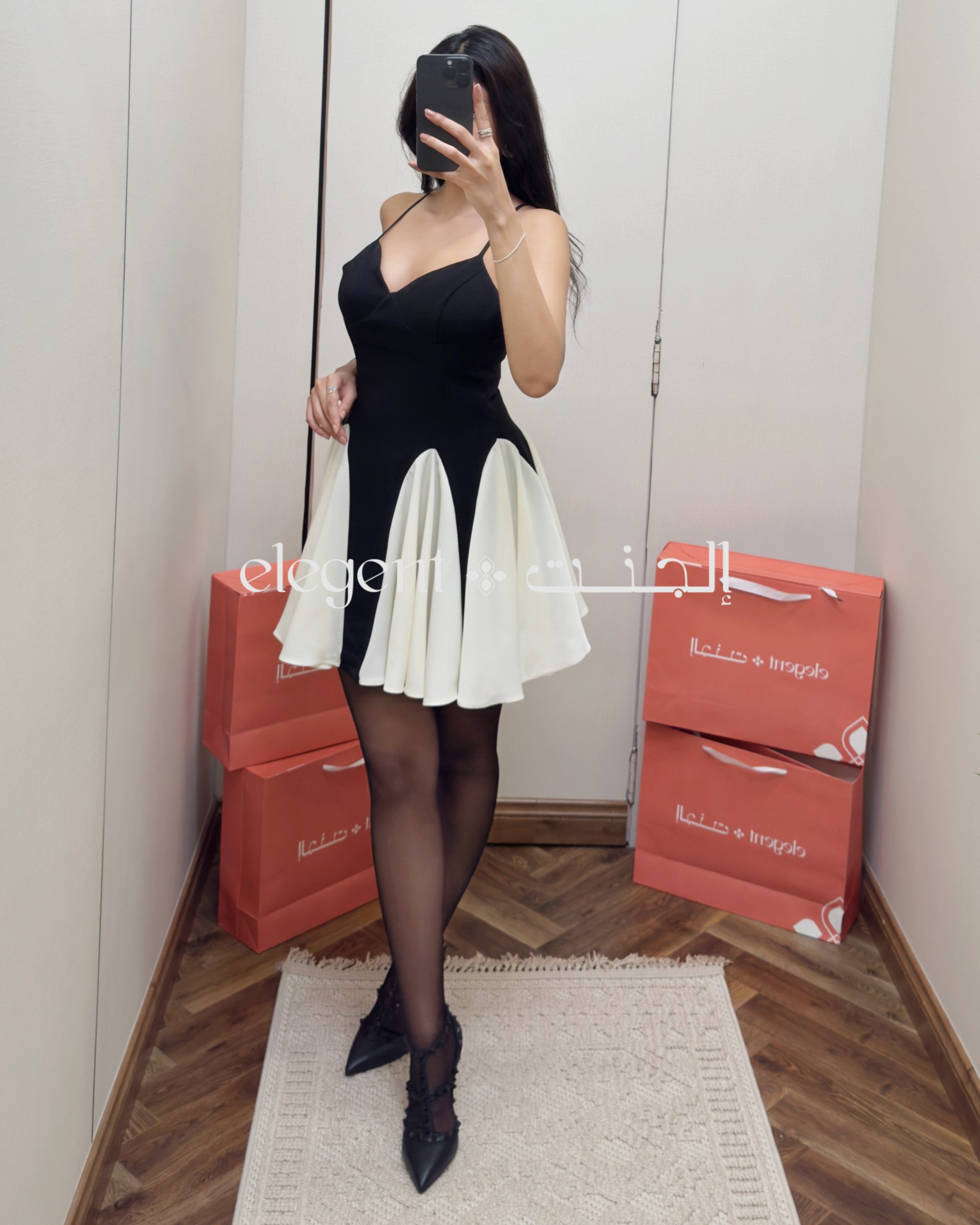 فستان سهرة ناعم قصير بكسرات بلونين هو الخيار المثالي لإطلالة أنثوية لافتة. يتميز هذا الفستان بتصميم جذاب يجمع بين اللون الأسود العميق والكريمي الفاتح، مما يخلق تباينًا أنيقًا يجذب الأنظار. القماش المستخدم خفيف وناعم، مما يجعله مريحًا في ارتدائه طوال السهرة.