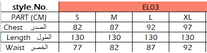 الفستان مصنوع من خامة ناعمة وانسيابية، مما يضمن لك الراحة والأناقة في آنٍ واحد. طوله يبلغ 130 سم، مما يجعله مثاليًا لمختلف الأطوال. كما أن خط العنق الدائري يضيف لمسة من الأنوثة والرقي.