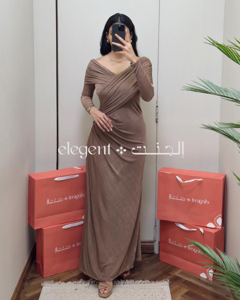 تألقي بإطلالة أنثوية ناعمة مع فستان سهرة ناعم كم طويل، الذي يجسد الفخامة والراحة في تصميمه. يتميز هذا الفستان بلون موكا الدافئ، مع خامة استرتش مريحة تضمن لك حرية الحركة وأناقة لا مثيل لها. تصميمه الملفوف مع لمسة درابيه أنيقة مزينة بحلية جانبية ذهبية تضيف لمسة من الفخامة، مما يجعله خيارًا مثاليًا للسهرات والمناسبات الخاصة.