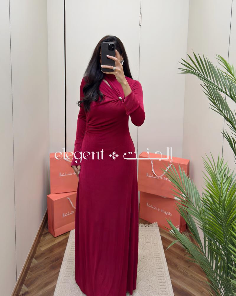 ارتقي بإطلالتك مع فستان سهرة ناعم طويل بتصميم مائل وبروش معدني أنيق عند الصدر. يتميز هذا الفستان بلونه التوتي الجذاب الذي يضفي لمسة من الحيوية والأناقة على مظهرك. مصنوع من قماش سترتش ناعم ومريح، يضمن لك راحة طوال السهرة، بينما تضفي الأكمام الطويلة مظهرًا محتشمًا وفخمًا.