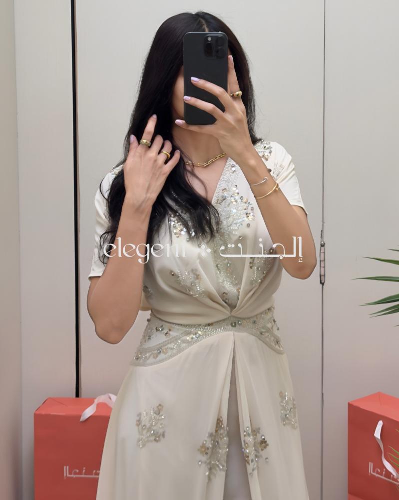 تتجلى الفخامة في التطريز الكريستالي المتقن الذي يضيف لمسة براقة، مما يجعل هذا الفستان ليس مجرد قطعة ملابس، بل تجربة فريدة تعكس ذوقك الرفيع. مع كل خطوة، ستشعرين بالثقة والجاذبية، مما يجعله فستانًا لا يمكن الاستغناء عنه في خزانة ملابسك.