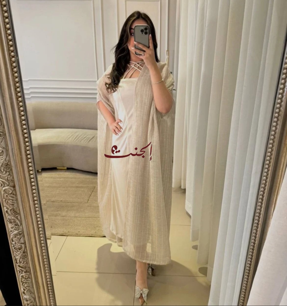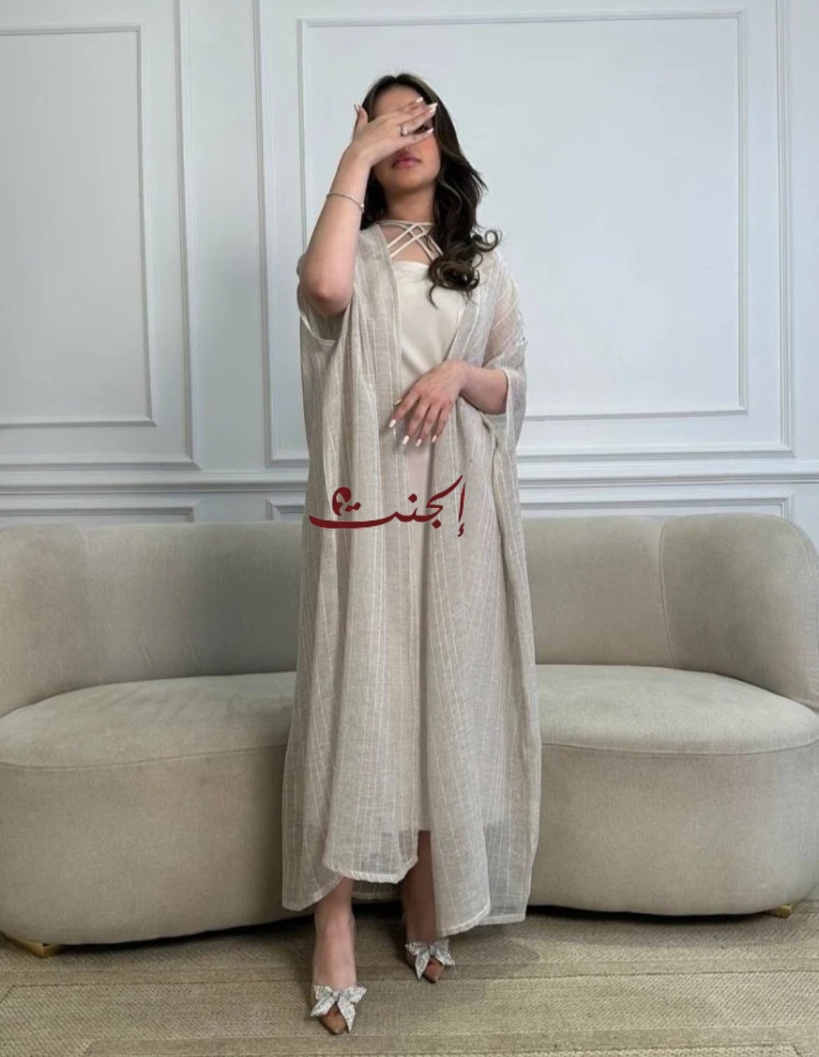إطلالة كاملة لجلابية بشت بيج ناعمة
