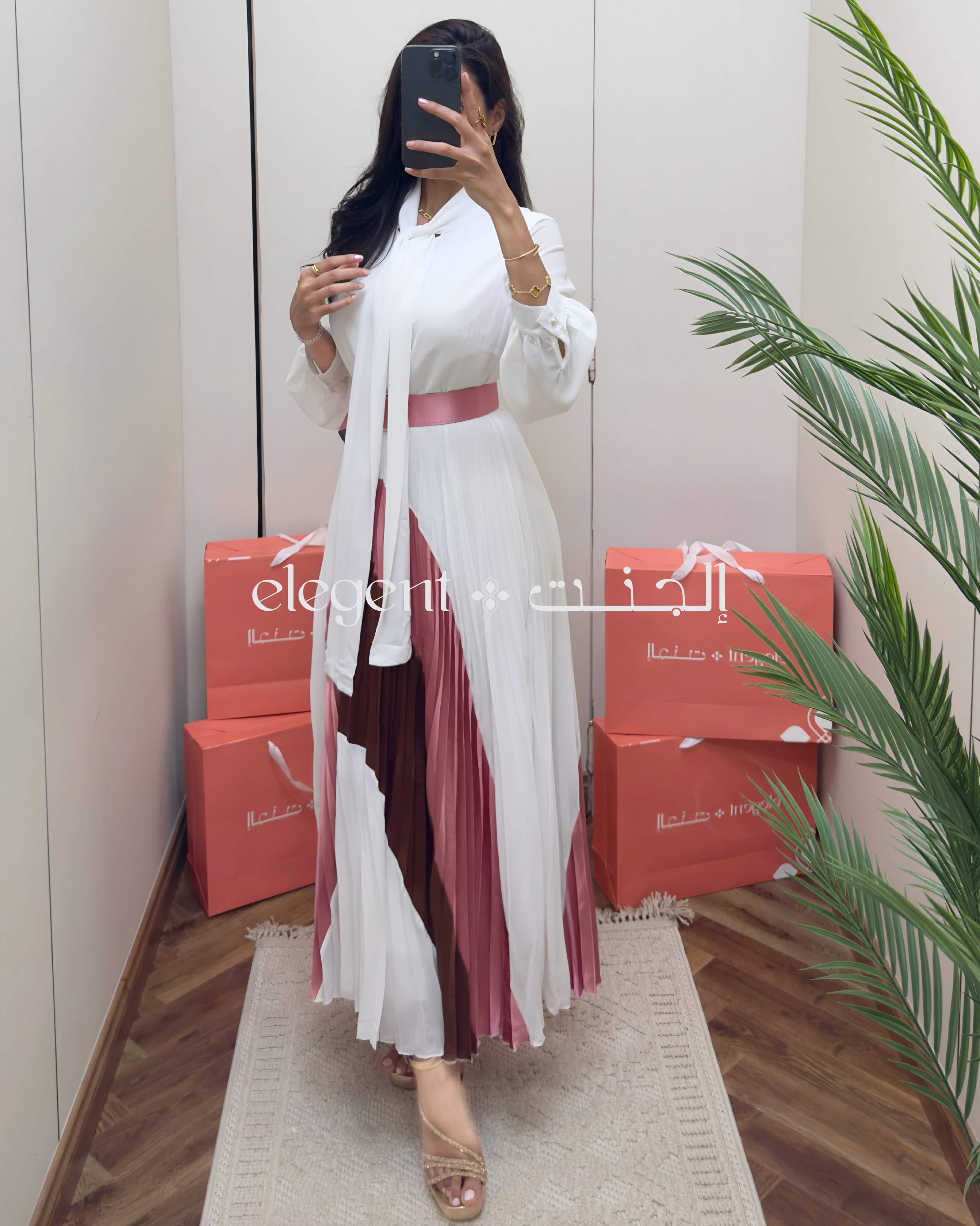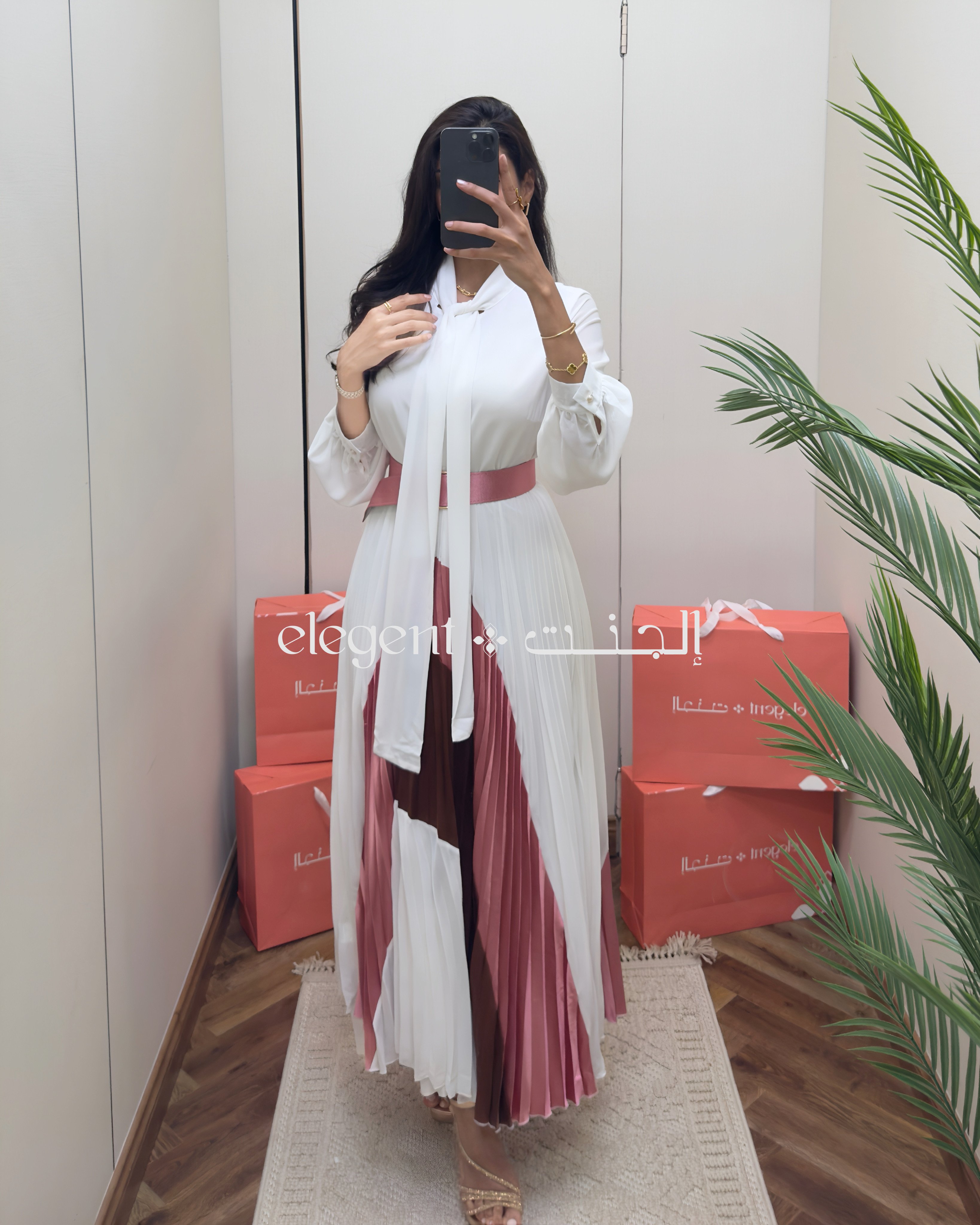 تميزي بإطلالة أنثوية فاخرة مع هذا الفستان المميز بقصة بليسيه فاخرة وتصميم مزدوج الألوان بين الأبيض والوردي الداكن. يتميز بربطة عنق أنيقة تعزز من فخامته، مع خصر محدد بحزام بلون متناسق يبرز جمال القوام. مناسب للمناسبات الراقية والإطلالات العصرية. خامة مريحة وانسيابية تمنحك إحساساً بالنعومة والأناقة في كل خطوة.