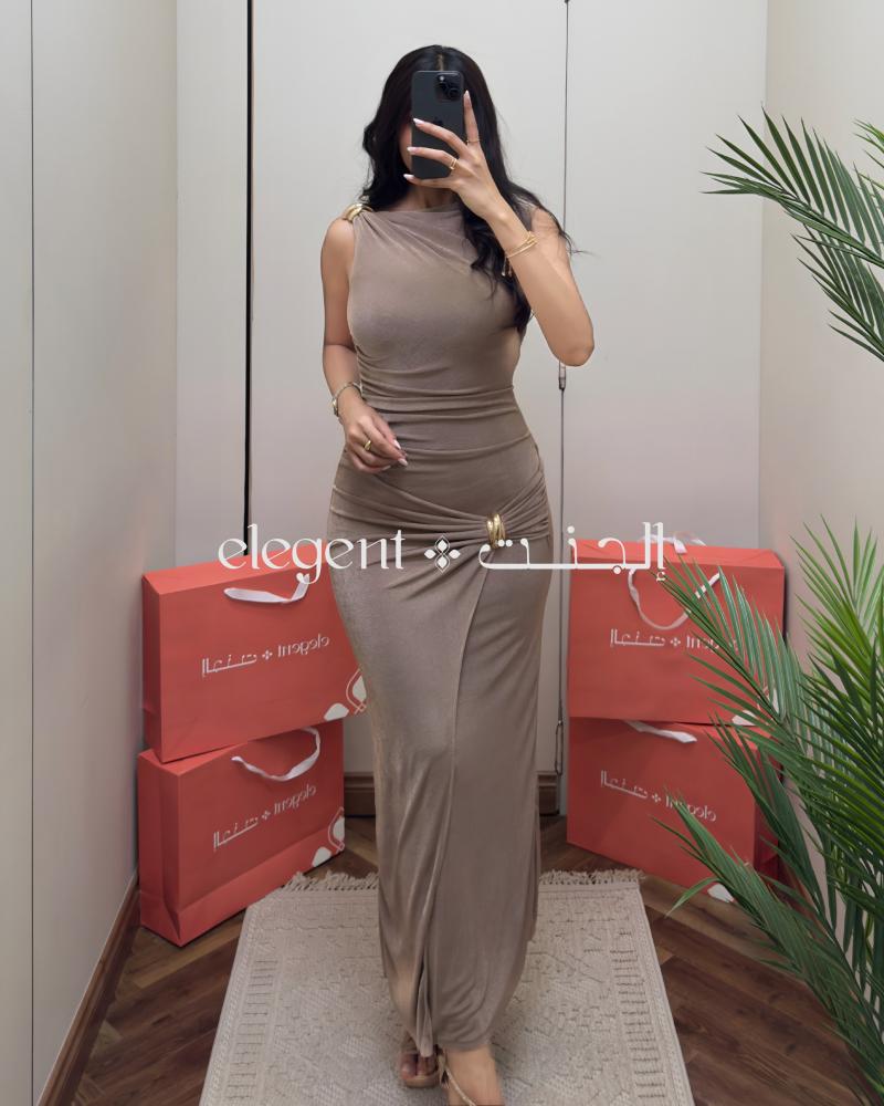 تميّزي بإطلالة فاخرة مع هذا الفستان البيج الملكي المصمم بعناية لإبراز جمالك الطبيعي. يتميز بتصميم كتف واحد أنثوي، وخامة استرتش ناعمة تلتف على الجسم بكل أناقة. تفاصيل الذهب عند الكتف والخصر تضيف لمسة راقية تشبه مجوهرات مدمجة في التصميم. مثالي للسهرات، المناسبات، أو حتى إطلالة ملكة هادئة