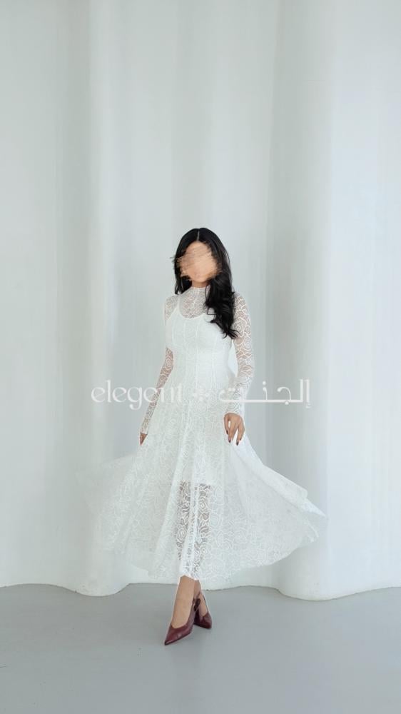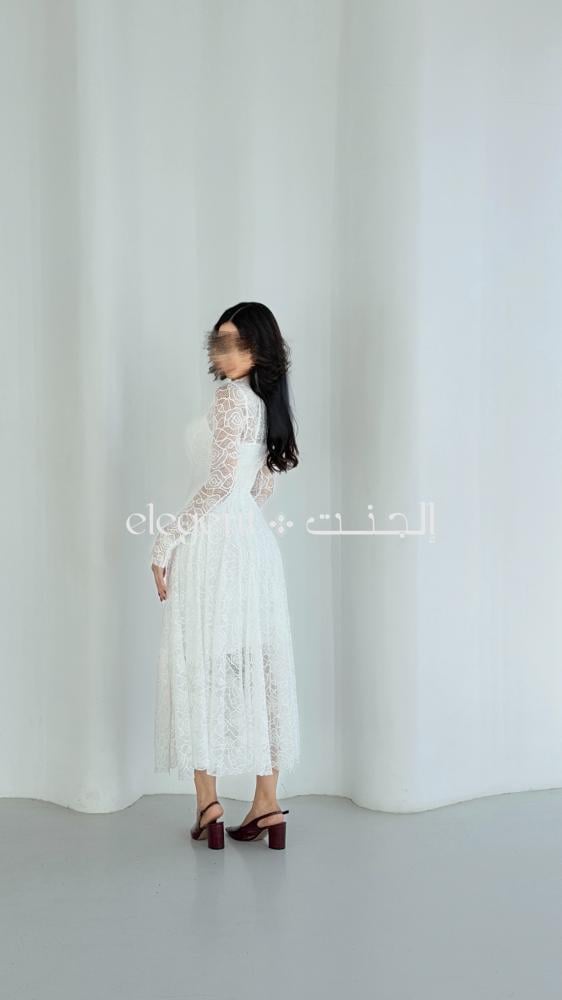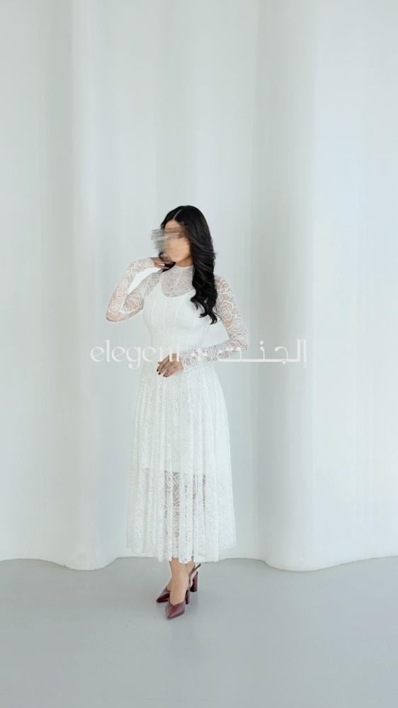 فستان دانتيل أبيض كم طويل، تصميم أنثوي راقٍ يجمع بين الأناقة والراحة. يتميز بقصة ميدي ناعمة وأكمام طويلة، مما يجعله خيارًا مثاليًا لكل المناسبات. القماش الدانتيل الفاخر يضفي لمسة من الخفة والجاذبية، بينما توفر البطانة الداخلية راحة لا مثيل لها.