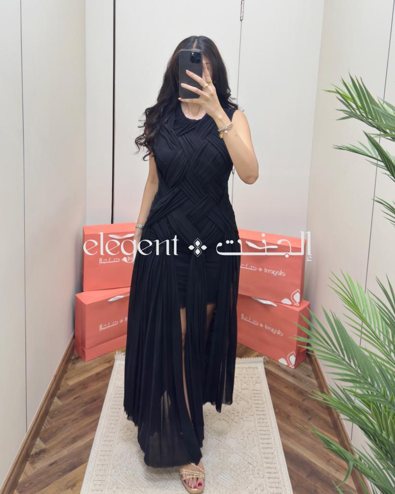 تألقي بإطلالة فاخرة مع هذا الفستان الأسود الراقي بدون أكمام، والمصمم بقصة كروسيه ملتفة تبرز جمال القوام وتمنحك لمسة أنثوية مميزة. يتميز بتفاصيل دقيقة وأقمشة انسيابية تضفي لمسة فاخرة على مناسباتك الخاصة. مثالي للسهرات والحفلات المسائية.