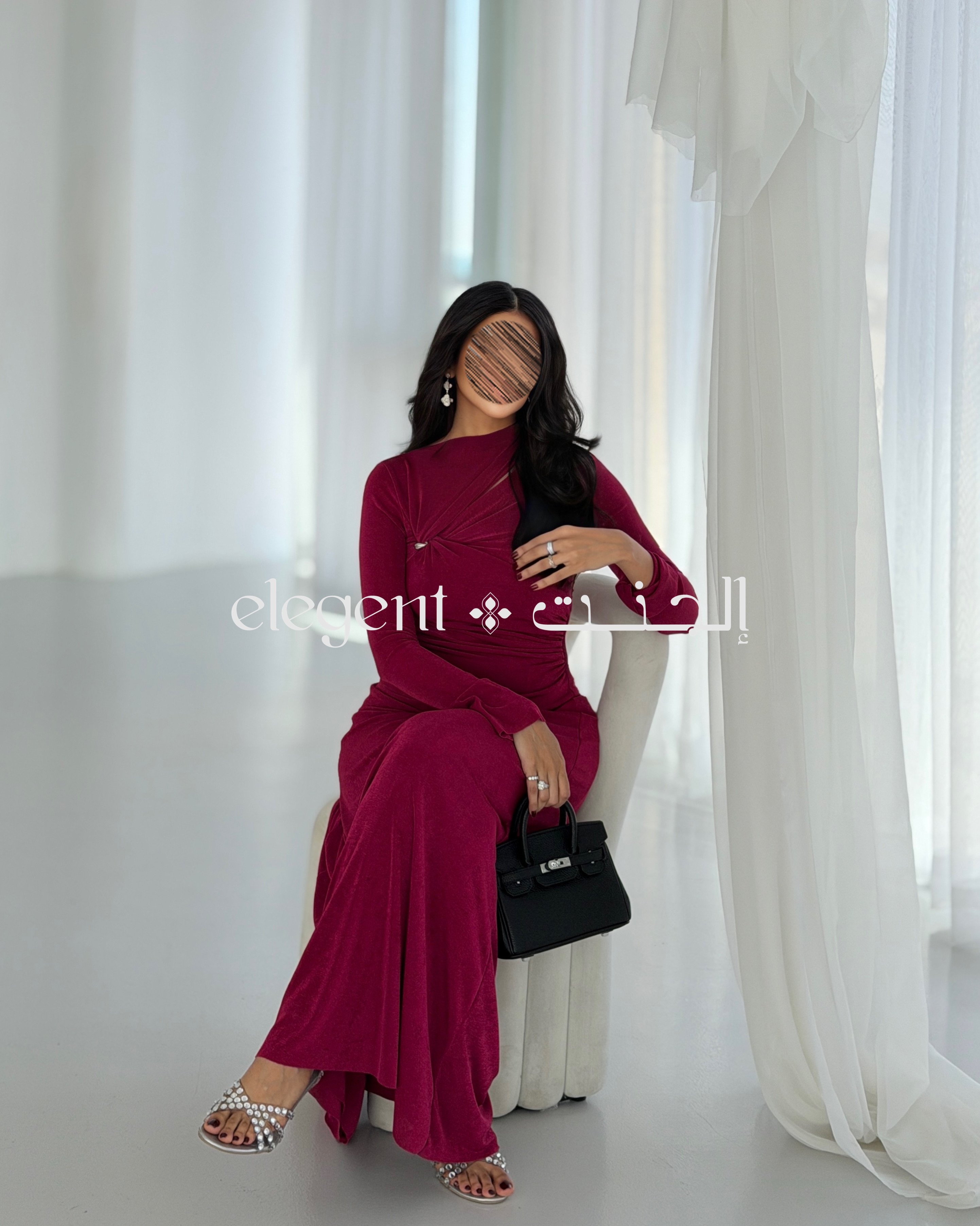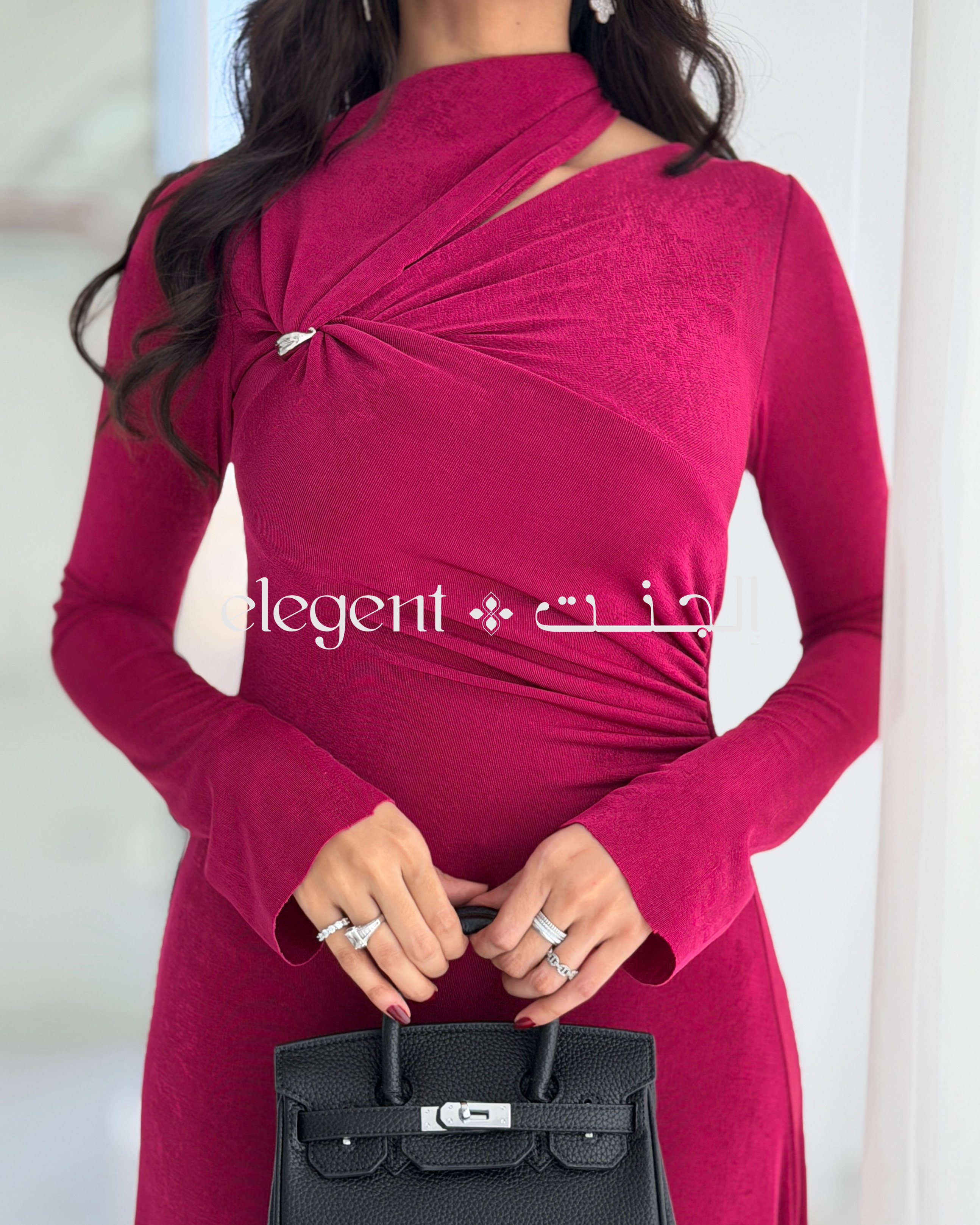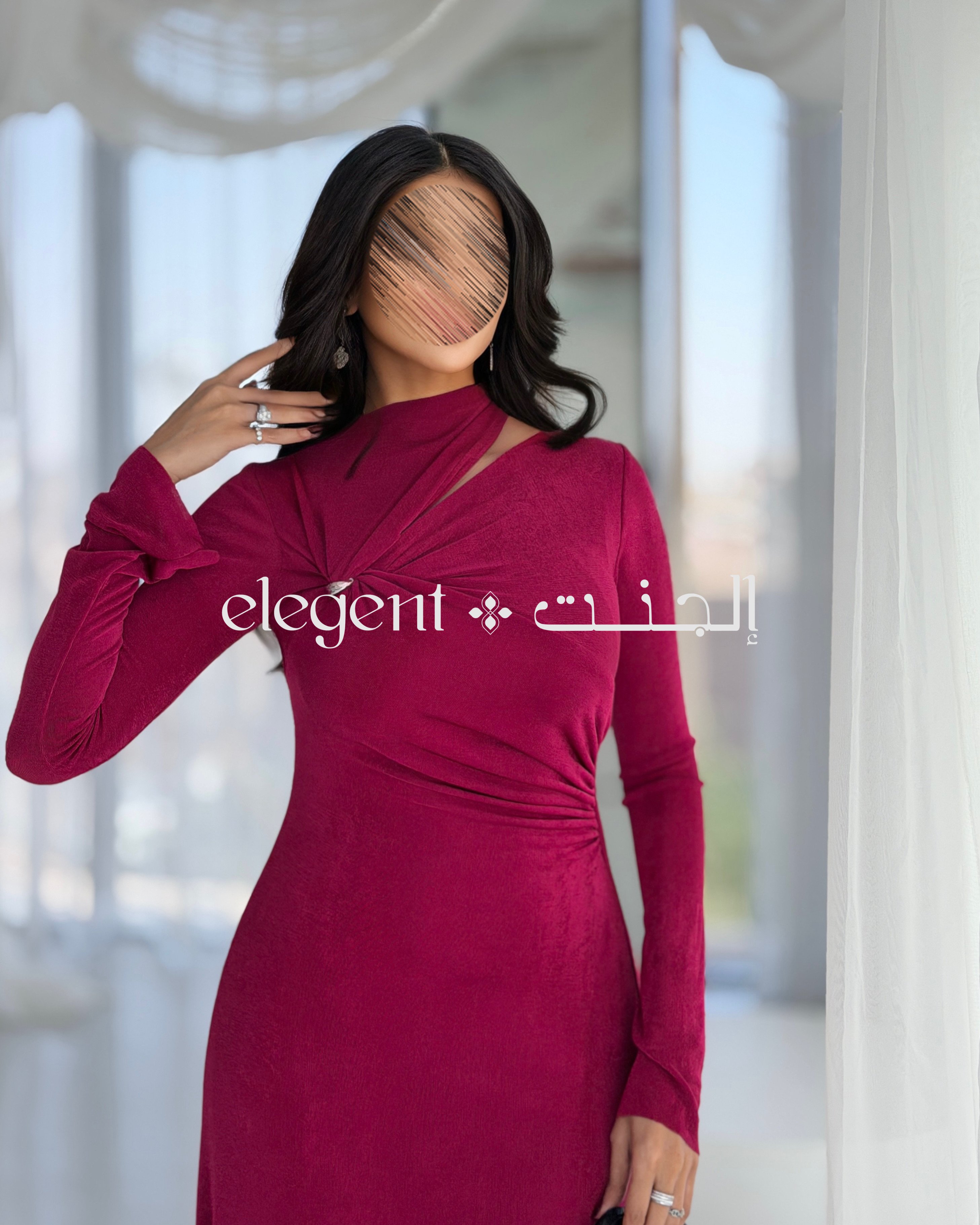 ارتقي بإطلالتك مع فستان السهرة التوتي الناعم الذي يجمع بين الأناقة والراحة. يتميز بتصميم مائل يضفي طابعًا عصريًا وجذابًا، وتفصيل بروش معدني أنيق عند الصدر ليضيف لمسة راقية ومميزة. مصنوع من قماش سترتش مريح وناعم على البشرة، بأكمام طويلة تمنحك مظهرًا محتشمًا وفخمًا في الوقت ذاته. مثالي للسهرات، المناسبات الخاصة، والعزائم الراقية.