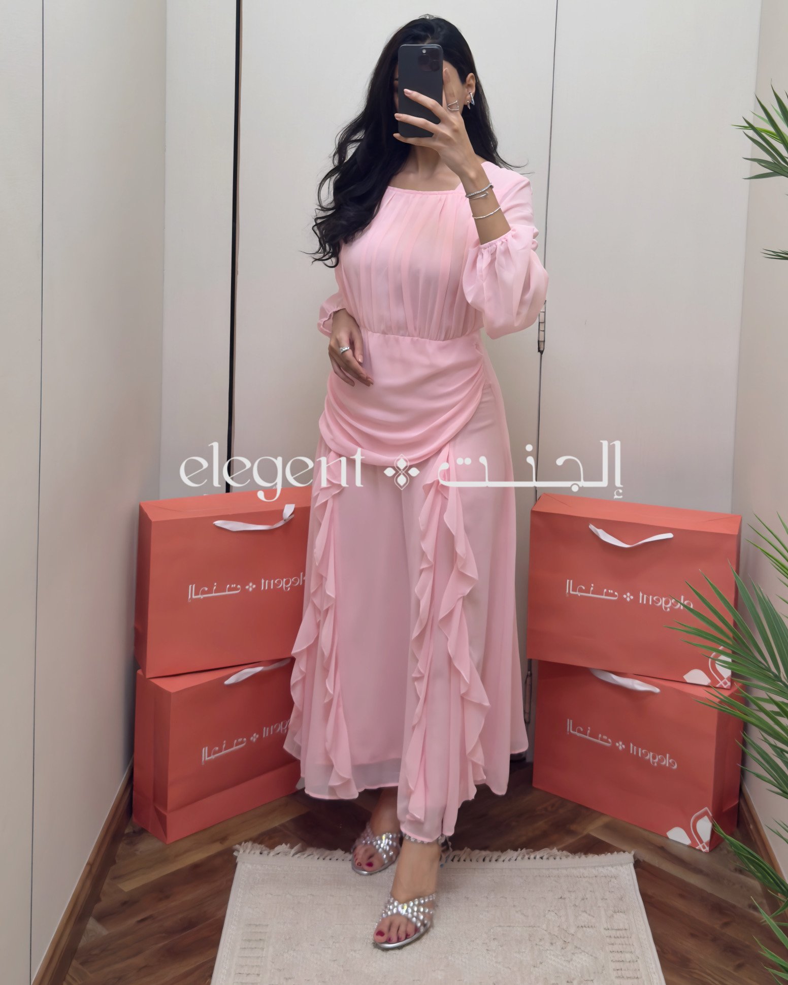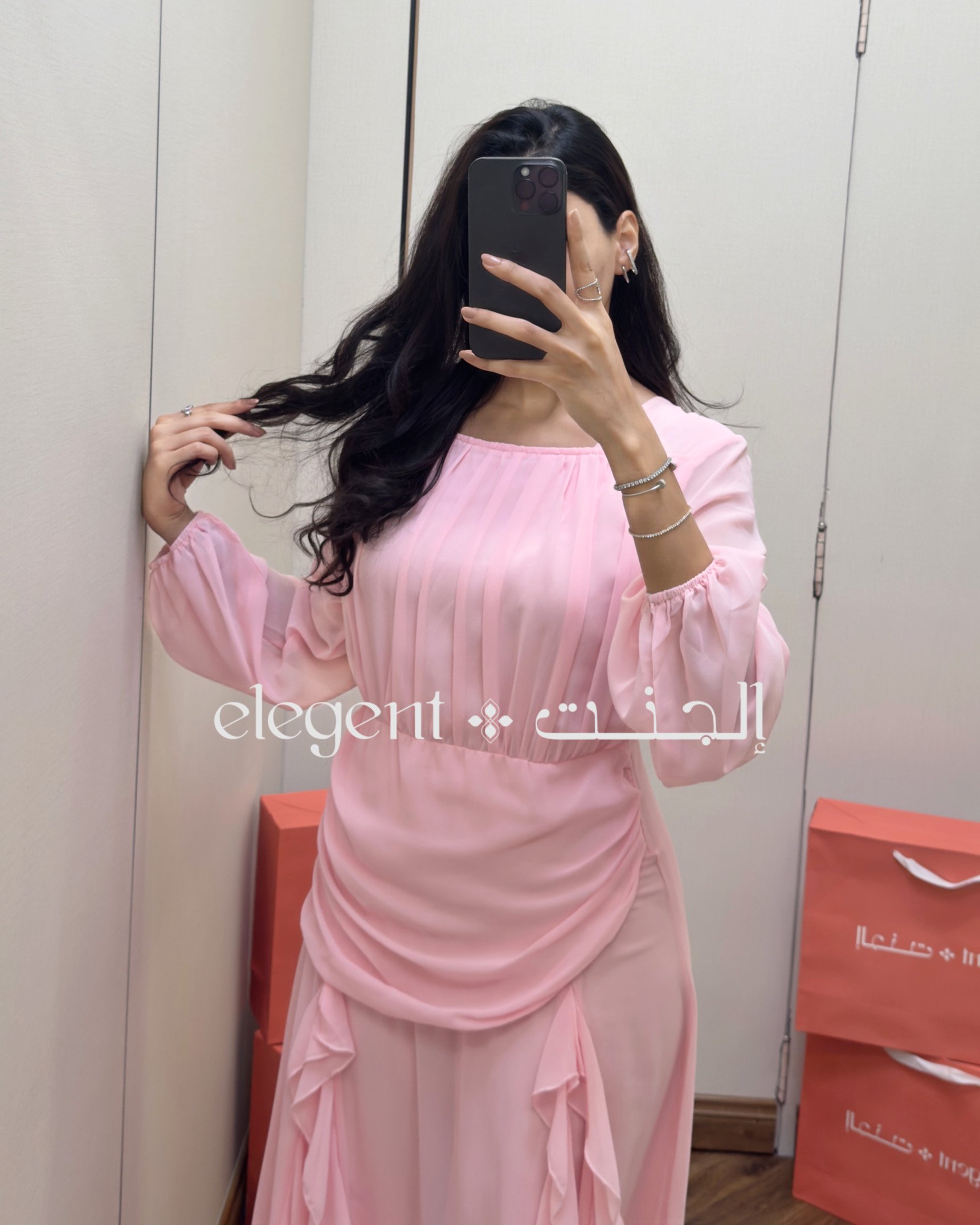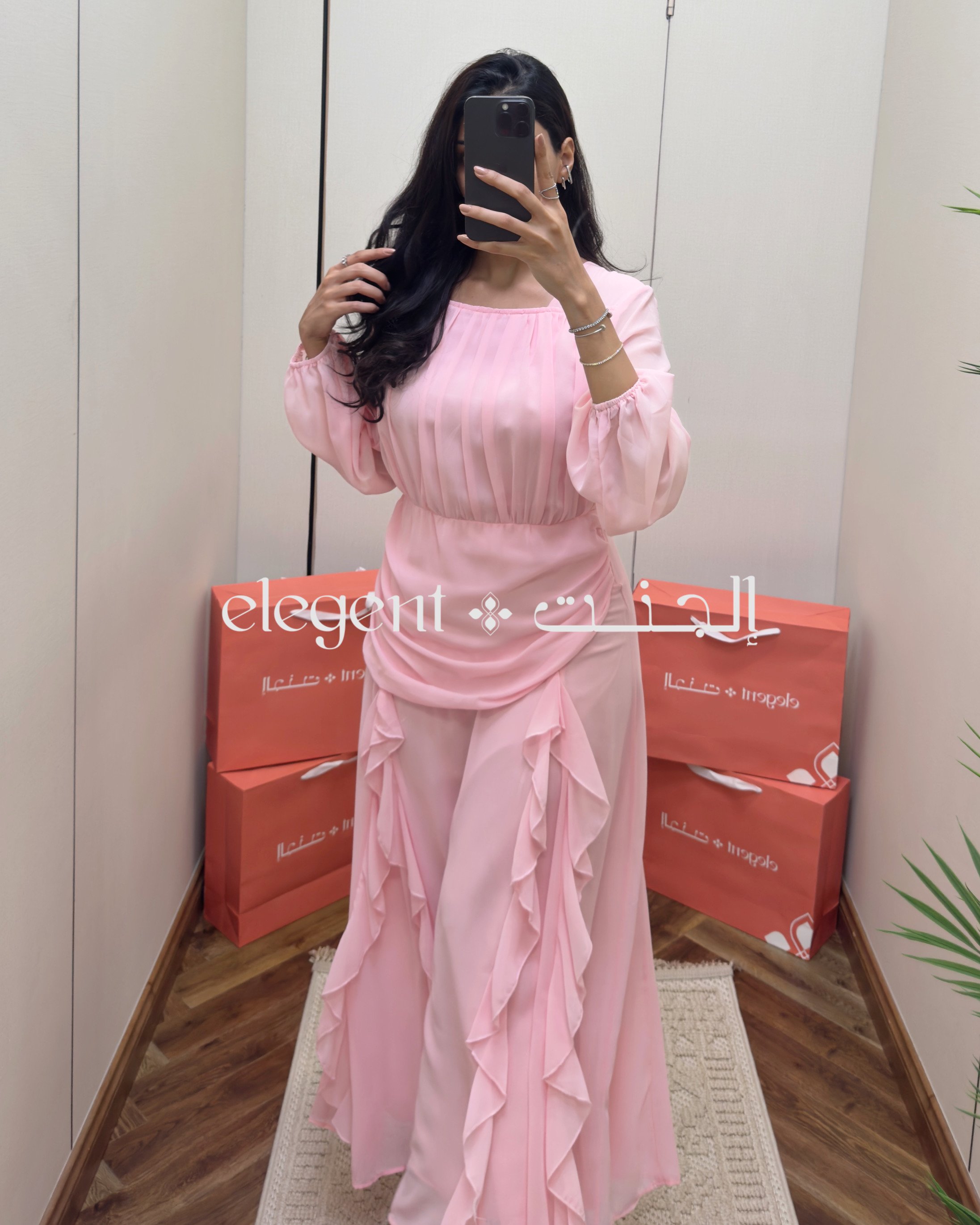 تألقي بإطلالة ناعمة ومفعمة بالأنوثة مع فستان الشيفون الوردي المصمم بكسرات طولية جذابة، وأكمام منفوخة تضيف لمسة من الأناقة. يتميز بقصة انسيابية مع طيات أنثوية جانبية تبرز جمال القوام. مثالي للمناسبات الخاصة أو السهرات الراقية، ويجمع بين البساطة والرقي في تصميم مريح ومحتشم.