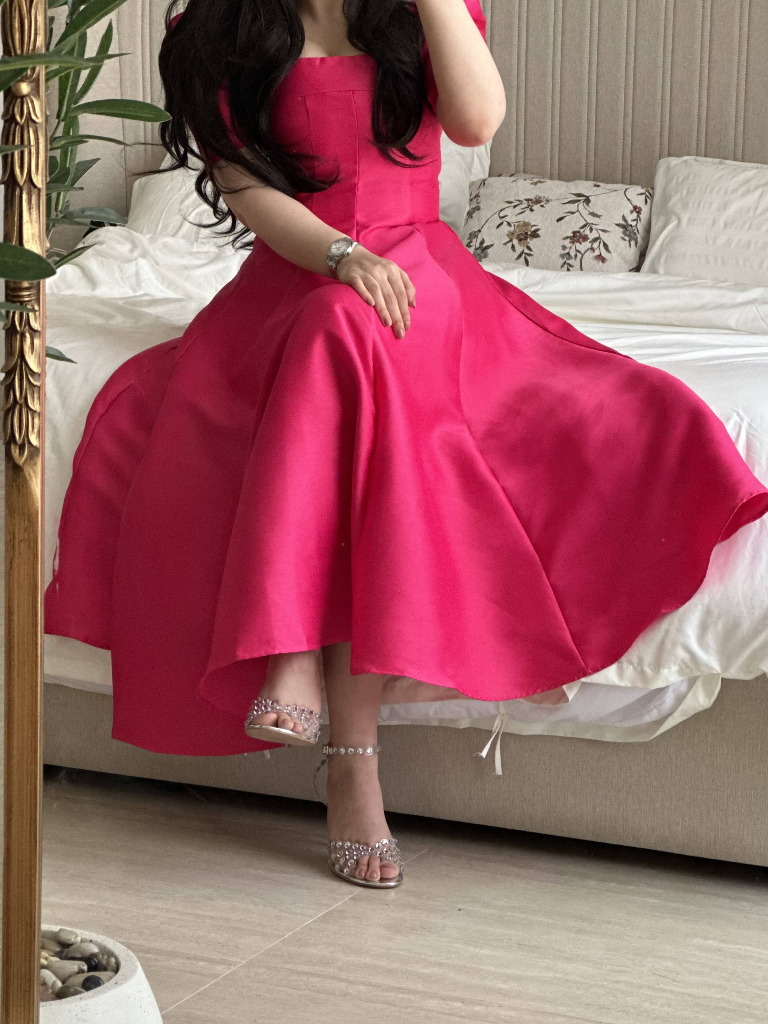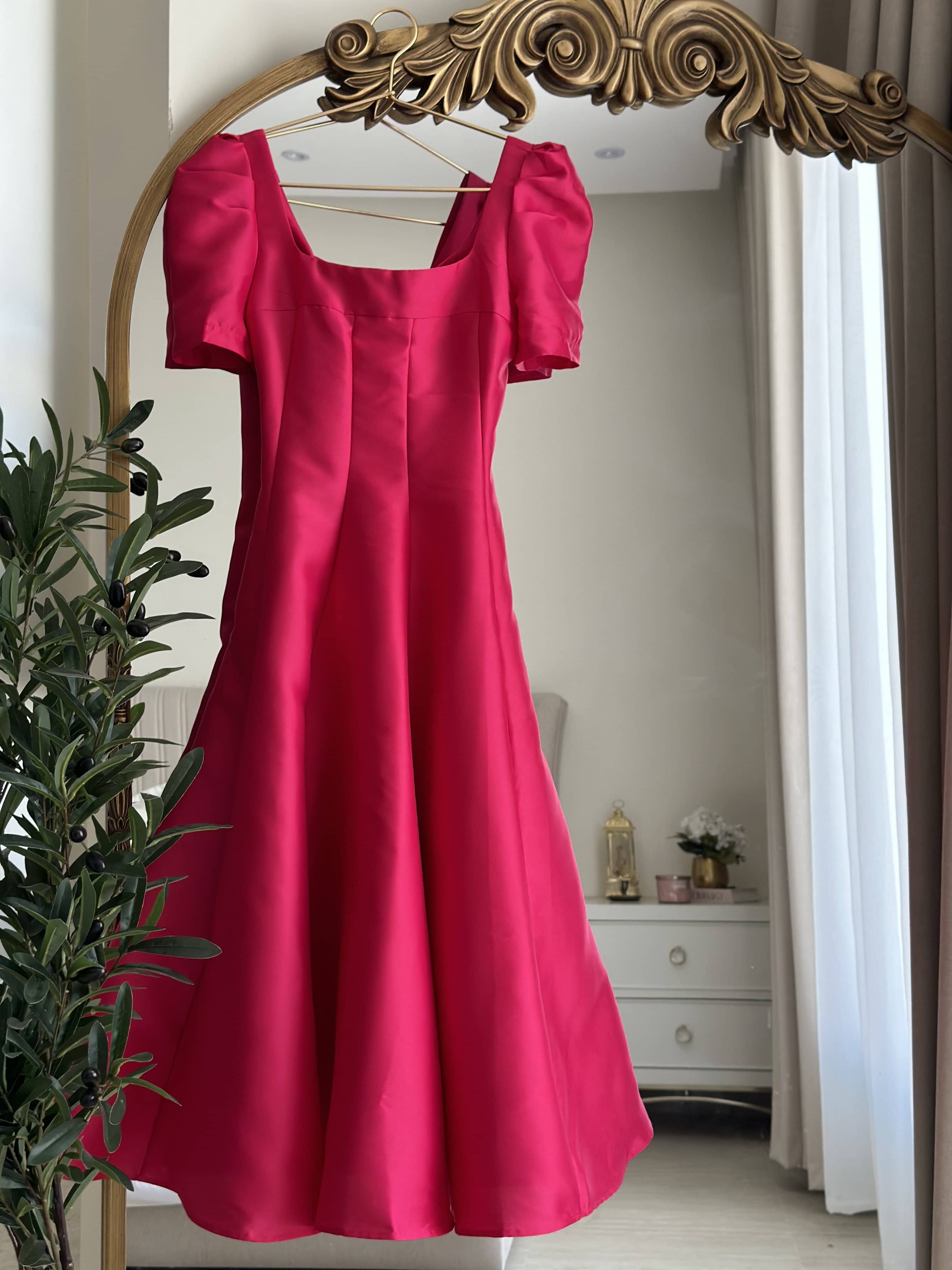 تألقي بإطلالة مميزة مع هذا الفستان المنفوش بلونه الفوشي الجذاب، بتصميم ناعم وأنيق يناسب جميع المناسبات الخاصة. يتميز بقصة صدر مربعة وأكمام قصيرة منتفخة تضيف لمسة أنوثة ملكية. مثالي للخطوبات، المناسبات الرسمية، أو أي ظهور يتطلب حضوراً راقياً.