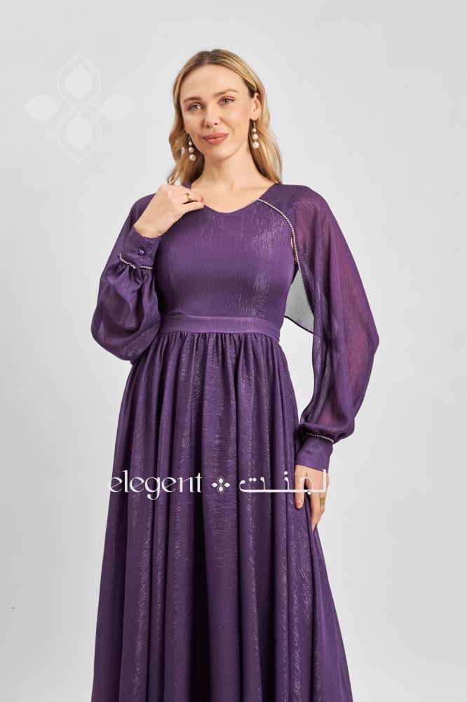 فستان بنفسجي أنيق بأكمام شفافة وقصة انسيابية