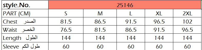 طول الفستان : 144 سم